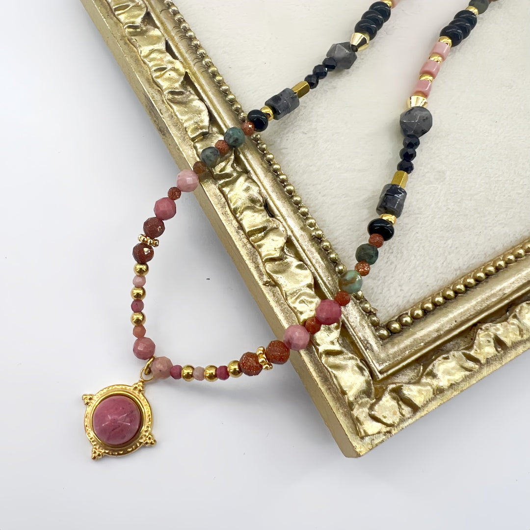 Rose Pink Natural Stone Colorful Beaded Necklace