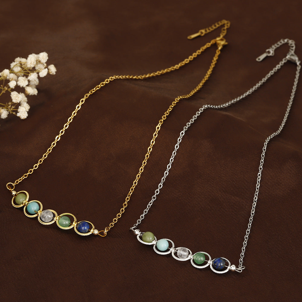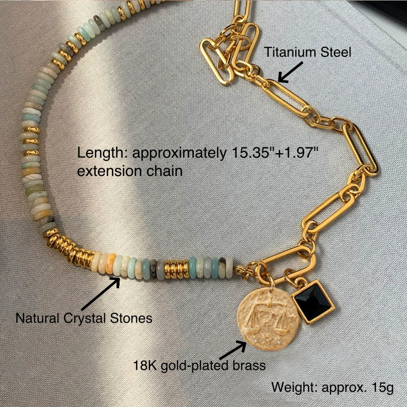 12 Zodiac Natural Stone Asymmetrical Design Luxe Necklace
