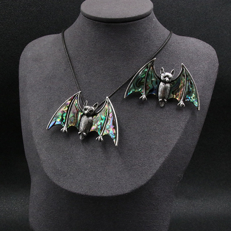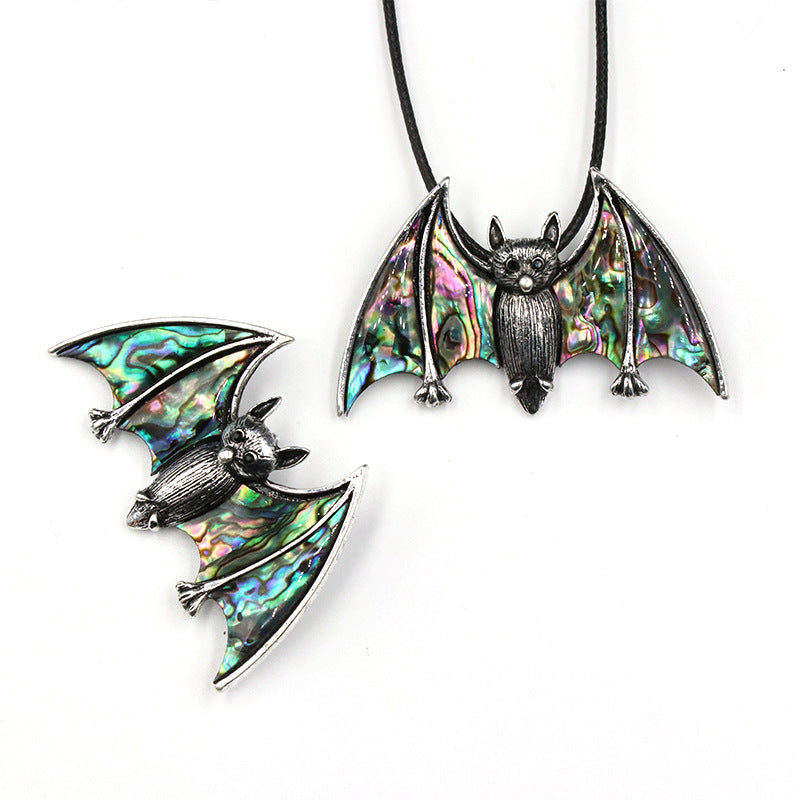 Halloween Abalone Shell Bat Pendant Brooch 2-in-1 Jewelry