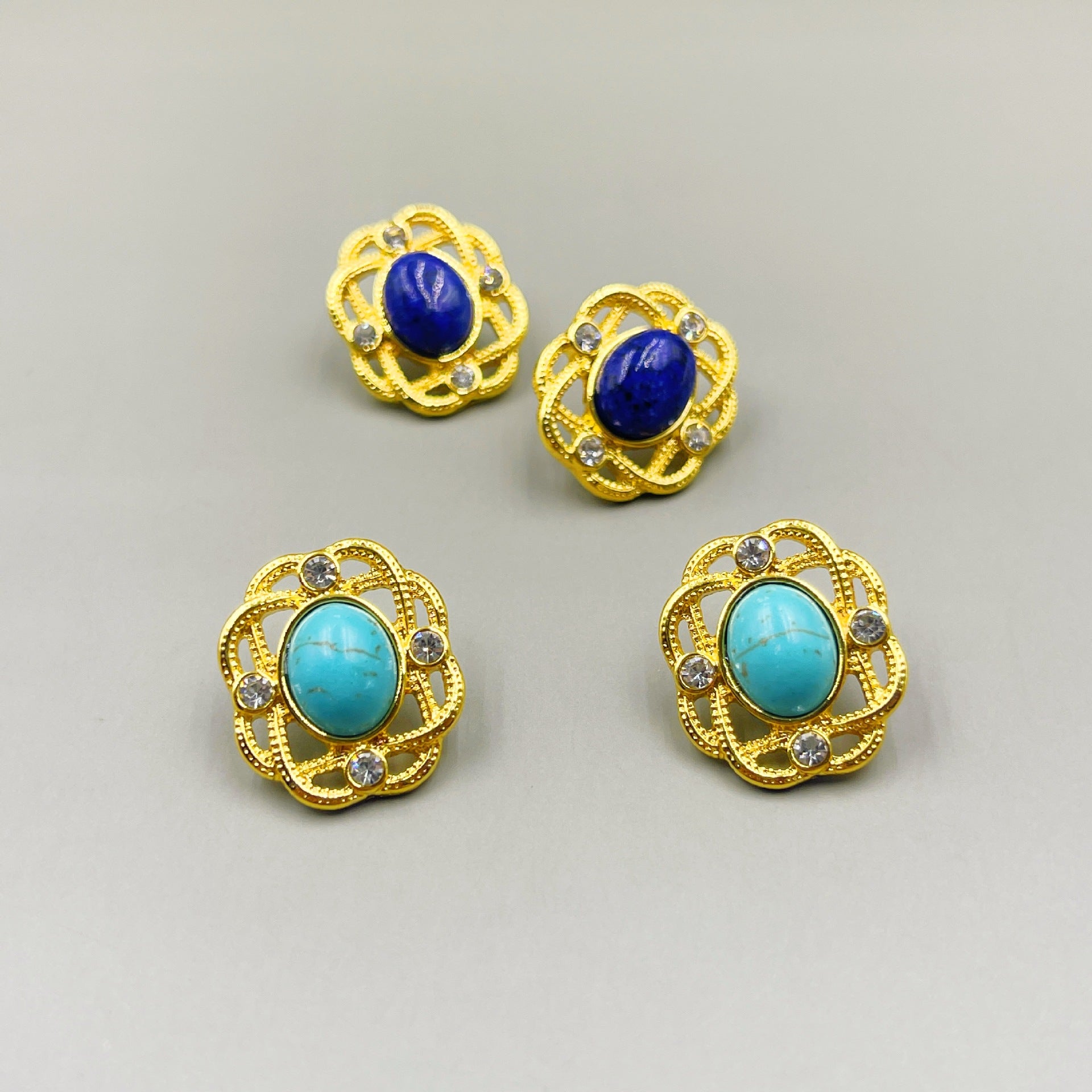 Vintage Hollow Inlaid Natural Turquoise Ear Studs