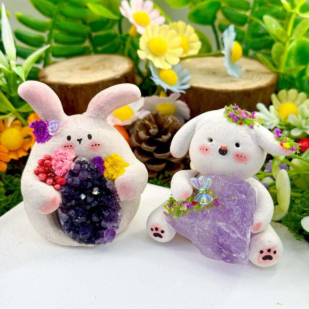 Cute and Healing Amethyst Bunny & Puppy Crystal Pets