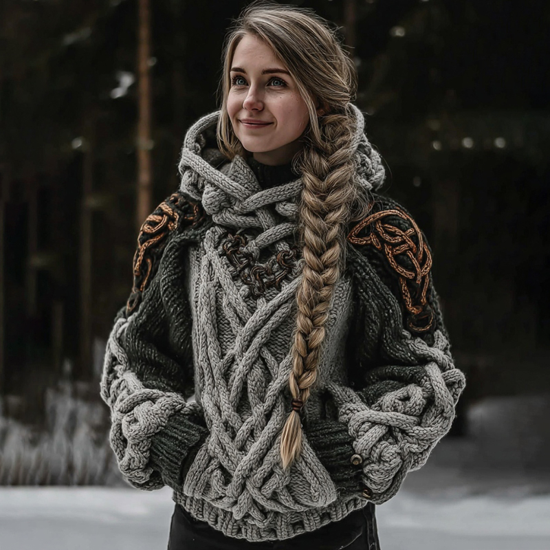 Women's Vintage Casual Viking Knit Hooded Sweater