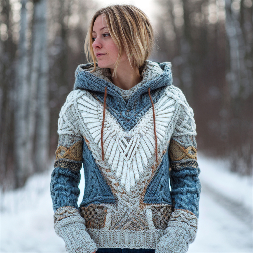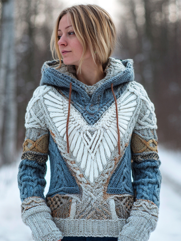 Women's Vintage Casual Viking Knit Hooded Sweater
