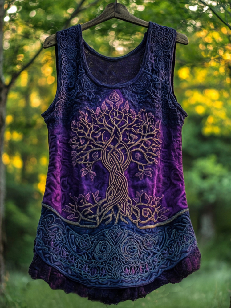 Boho Viking Tribal Celtic Knot Life Of Tree Patchwork Art Sleeveless Tank Top