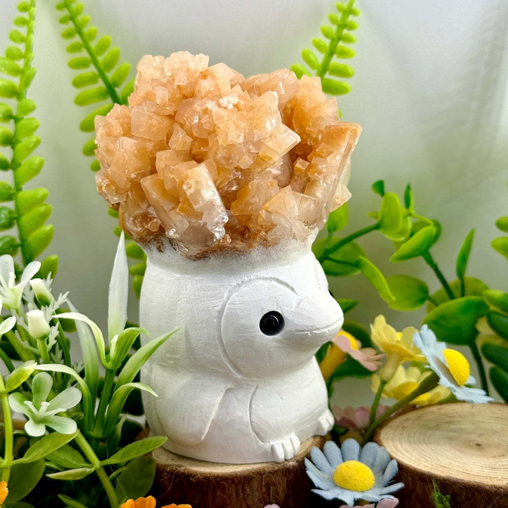This adorable Calcite Penguin Crystal Pet is handcrafted from quartz sand. Its round and chubby penguin shape, paired with a cluster of natural calcite on its head, looks like a warm golden crown.