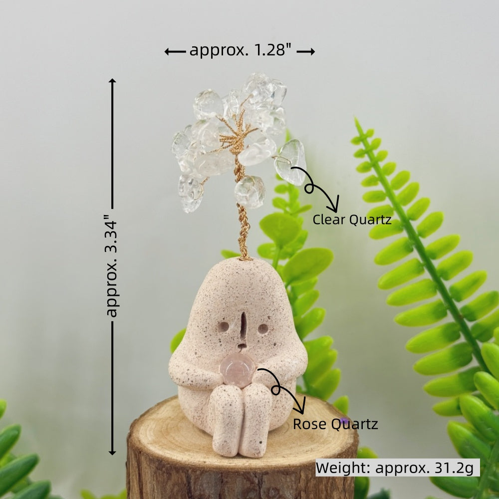 This Calm Buddy Crystal Pet is handmade by the designer.Its raw-stone texture and quiet, introspective expression create an instant emotional connection—almost like seeing the part of yourself that needs a gentle hug.