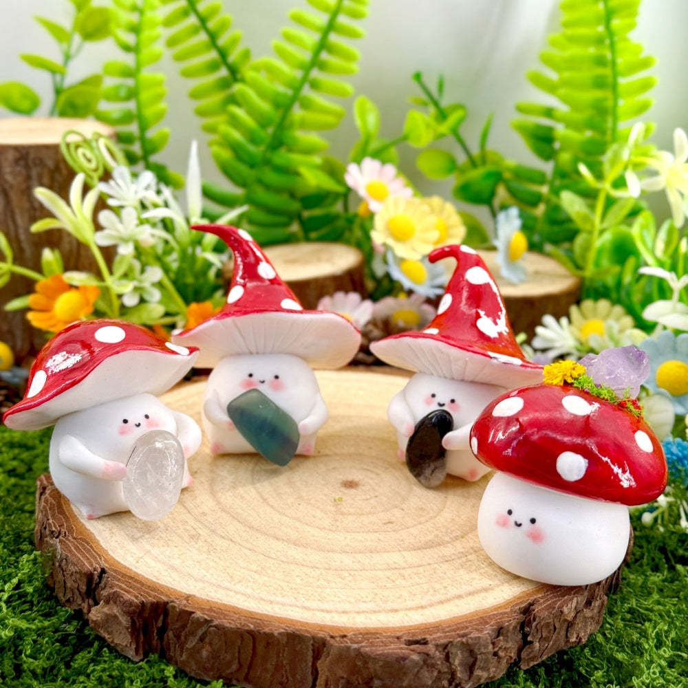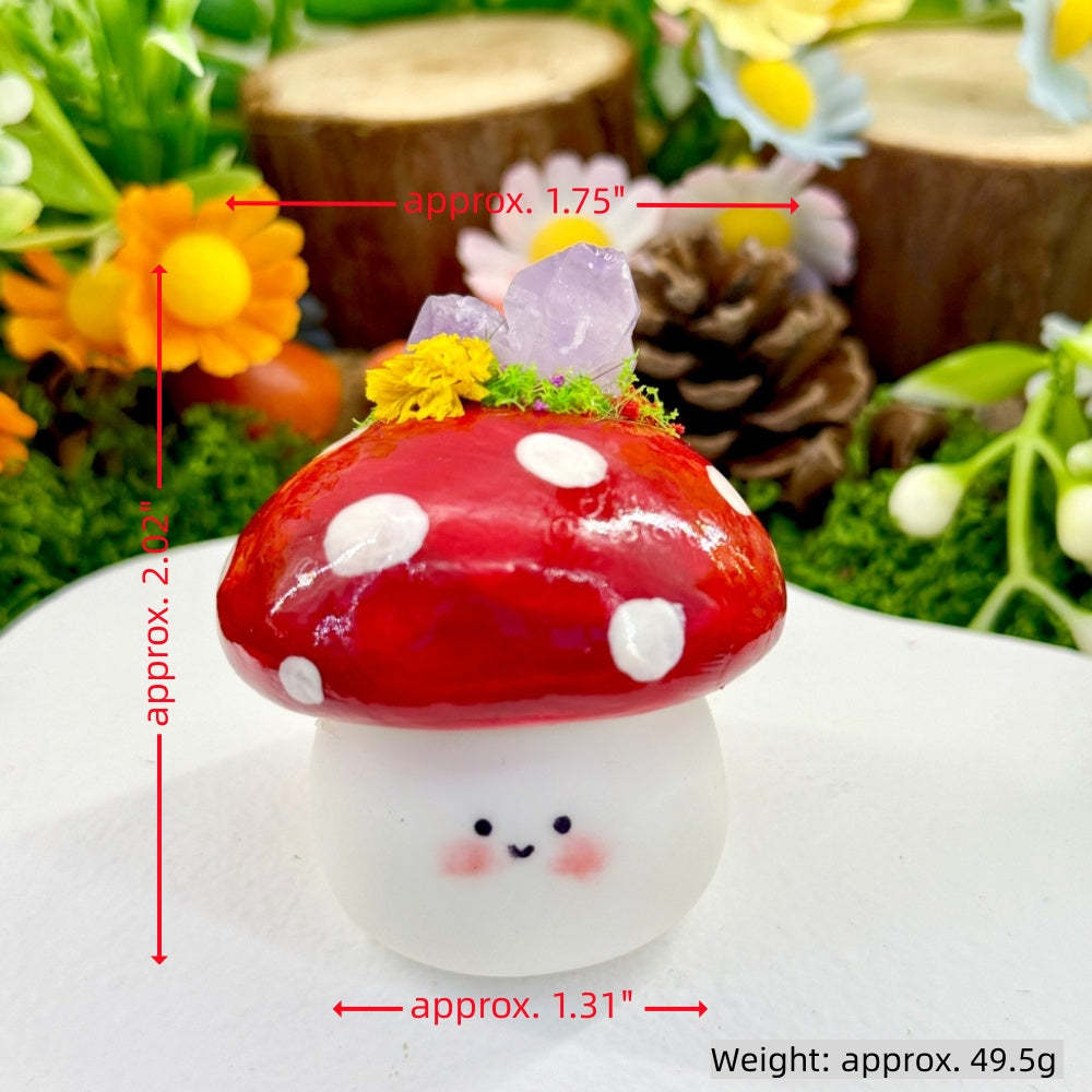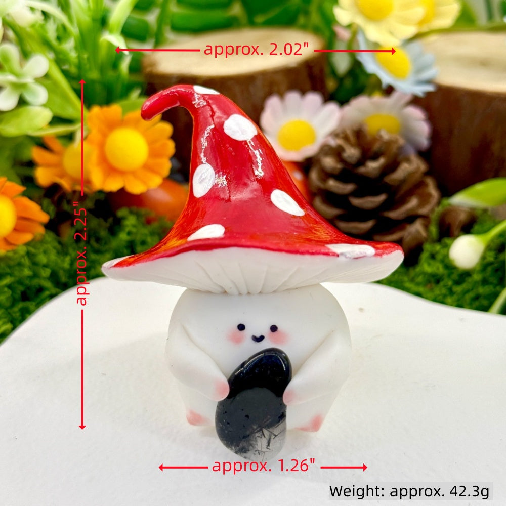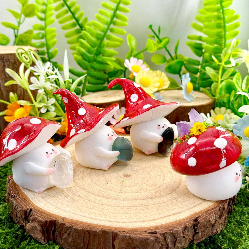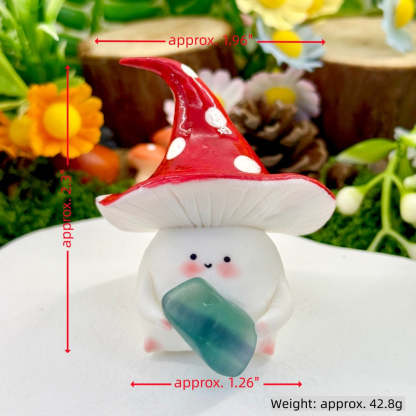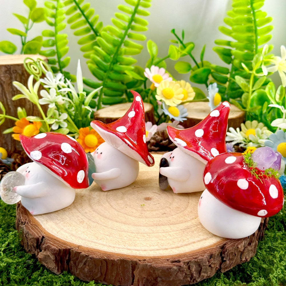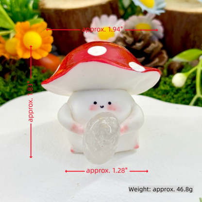 This adorable Mushroom Crystal Pet is handcrafted by the designer. Its rounded little bean-shaped body paired with a red-and-white mushroom hat makes it look like a tiny forest elf.