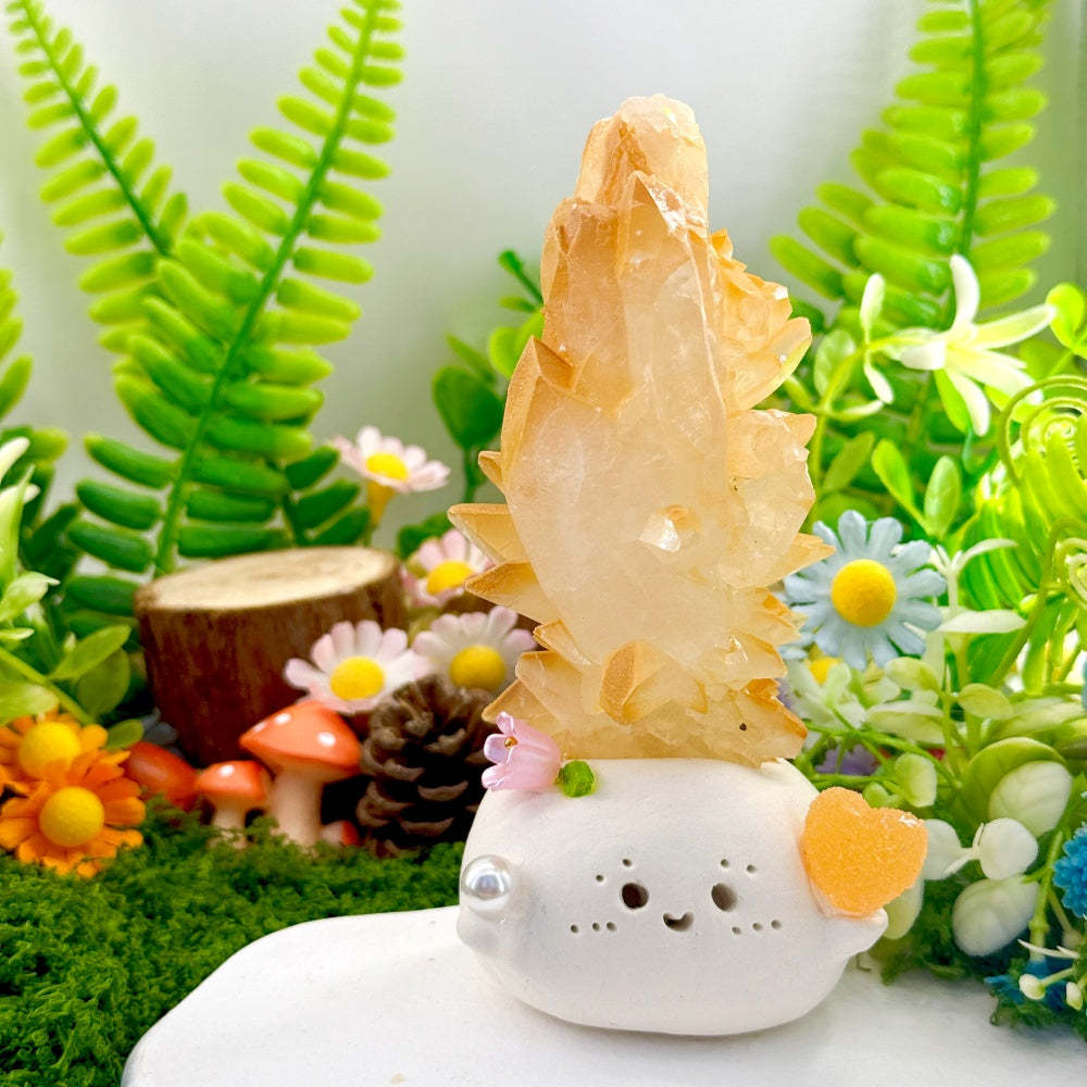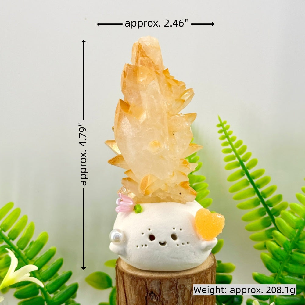 The natural yellow calcite on its head symbolizes joy, confidence, and emotional uplift, bringing warmth and lightness to you whenever you feel tired or low.
