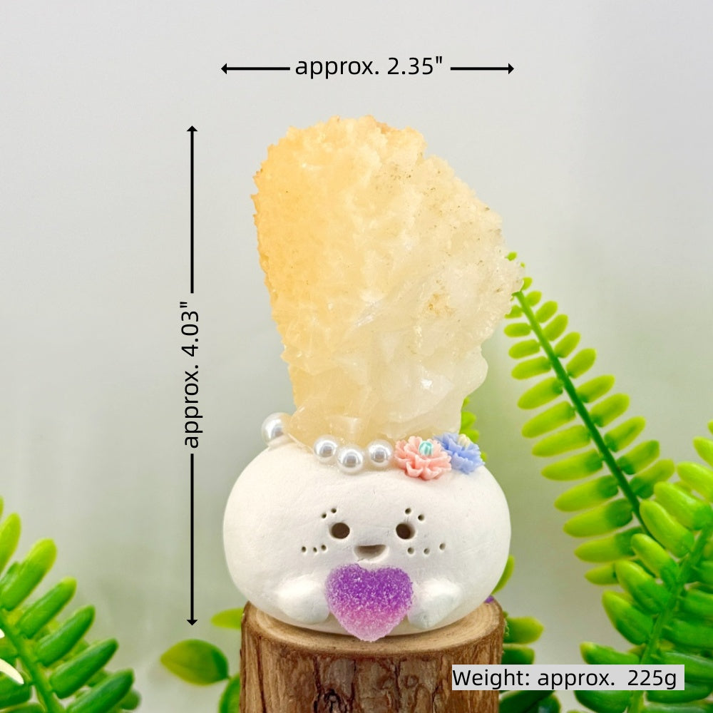 The natural yellow calcite on its head symbolizes positivity, joy, and confidence, helping lift your mood, chase away heaviness, and bring a little more light into each day.