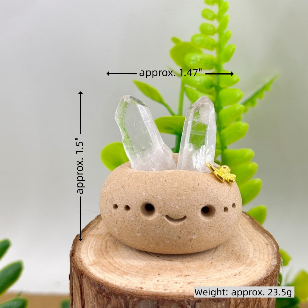 This Clear Quartz Bunny Crystal Pet is lovingly handcrafted, featuring a rounded, earthy dumpling-like body paired with adorable bunny ears. Its gentle expression carries a calming, healing presence that helps you relax the moment you see it.
