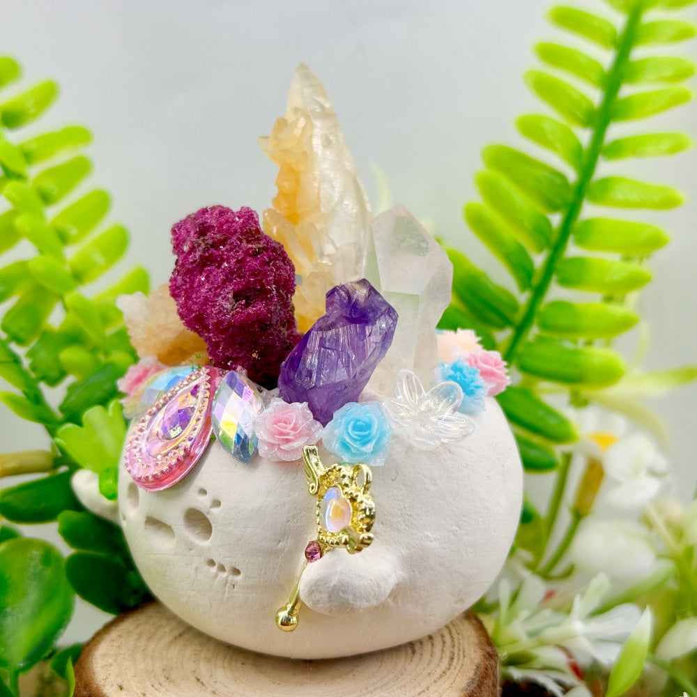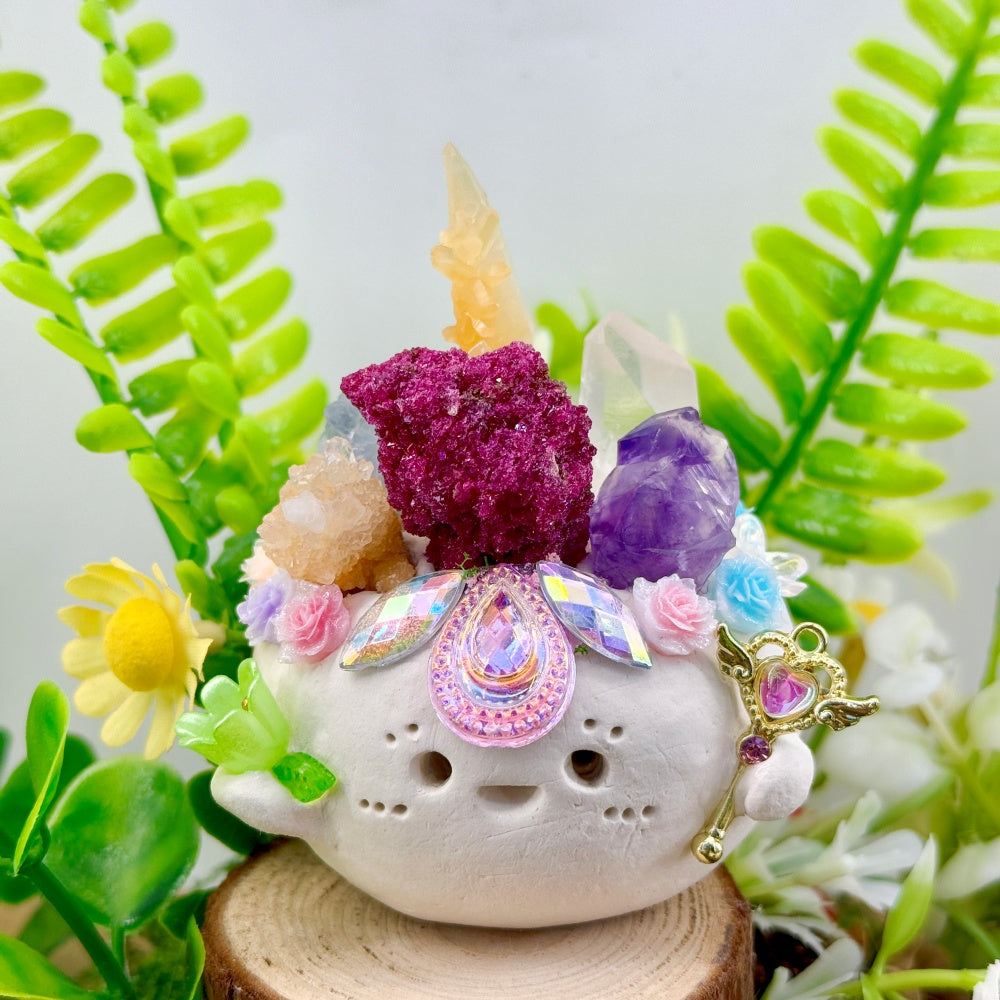 This dreamy and adorable Six-Crystal Crystal Pet is entirely handcrafted by the designer and decorated with five natural crystals. Each one symbolizes a different kind of power, working together to bring you soft and abundant healing energy.