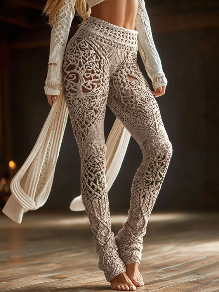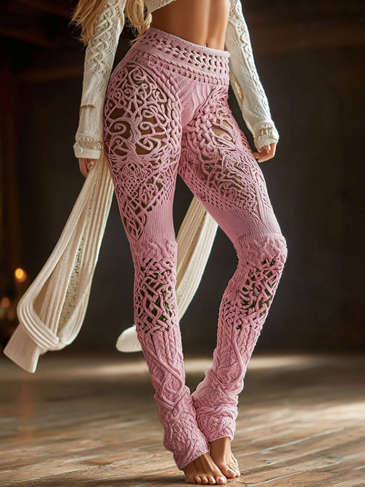 Vintage Viking Gradient Celtic Knot Art Knit Cozy Casual Leggings