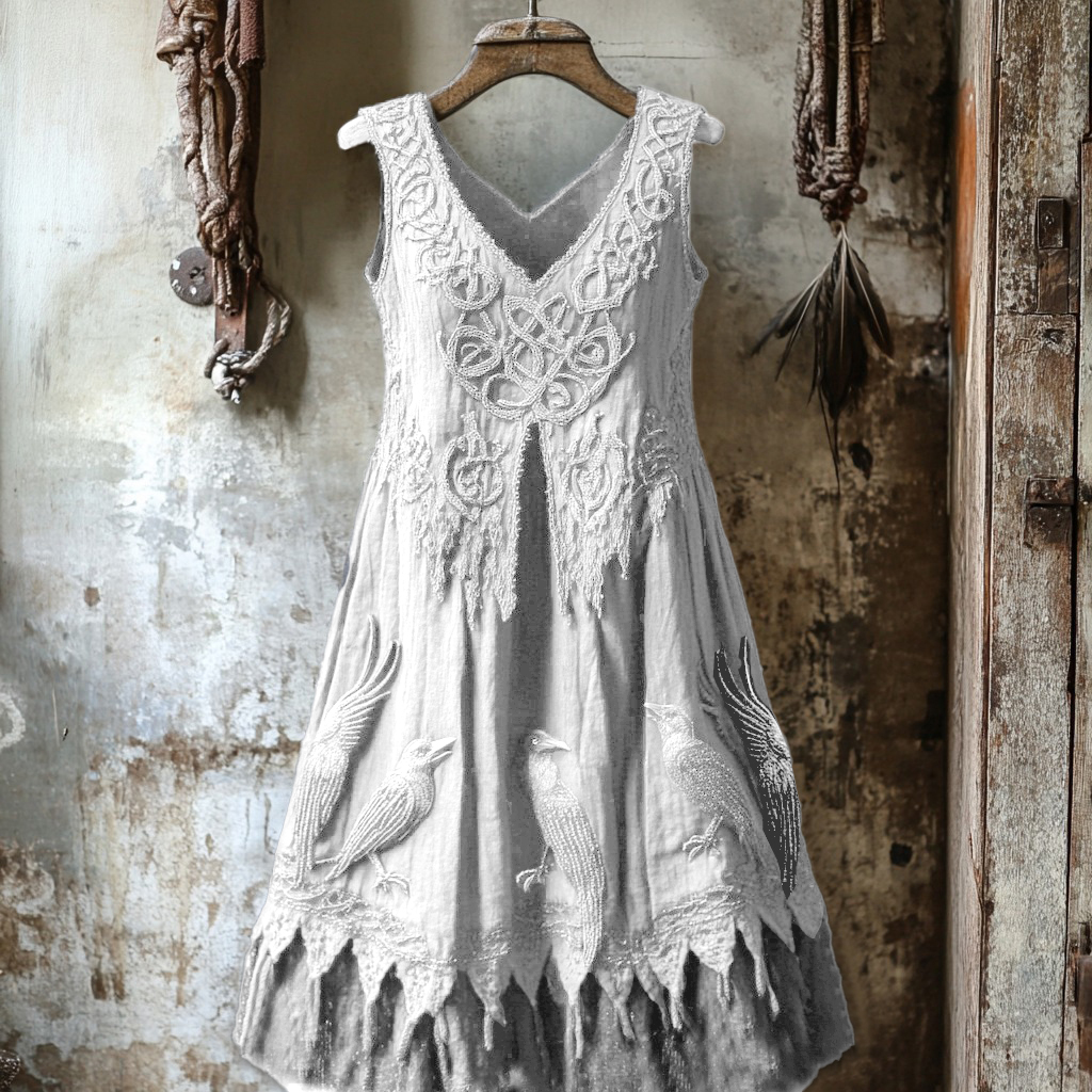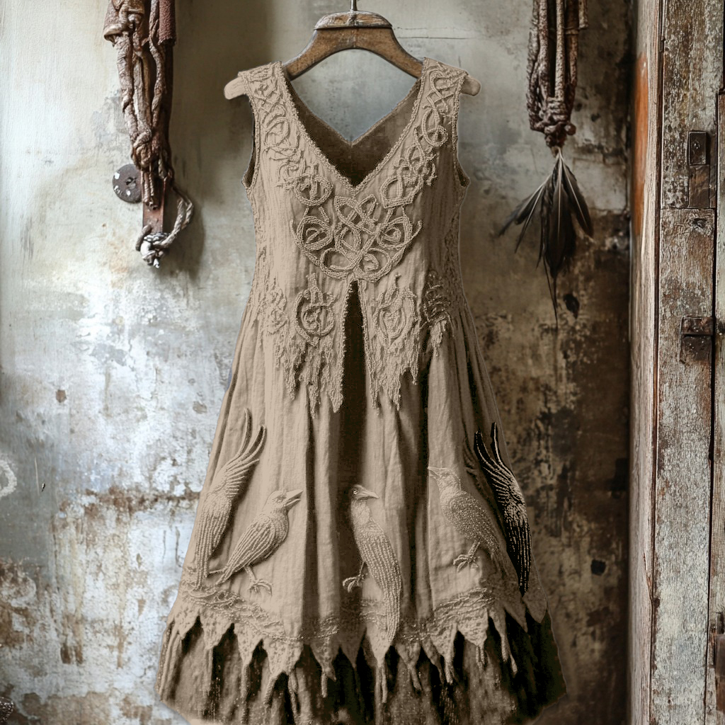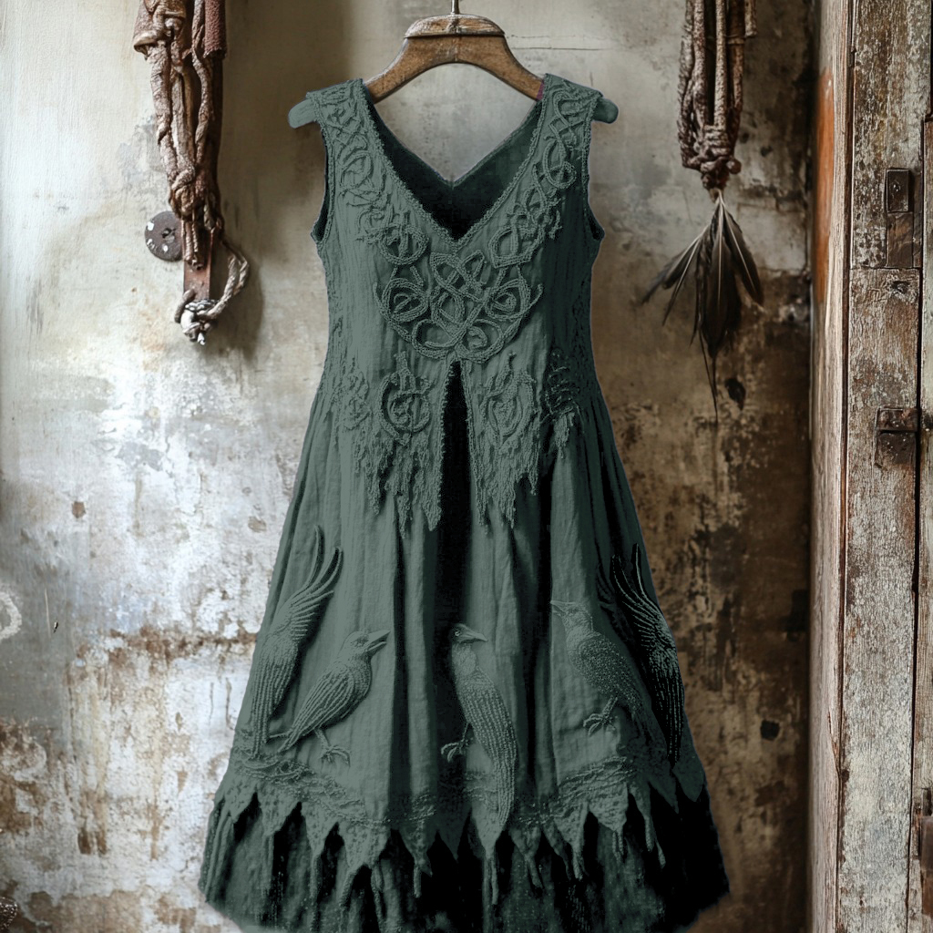 Women's Tribal Dark Night Raven Embroidery Celtic Lace Art Tank Dress