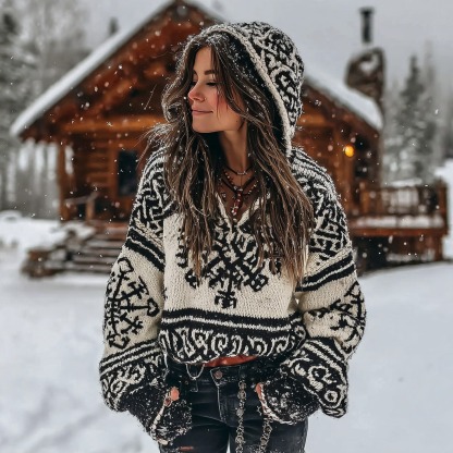 Women's Vintage Viking Celtic Knot Rune Pattern Knitted Zip-up Sweater